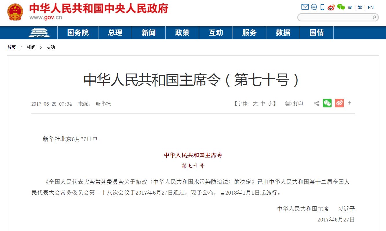 1月1日,新修訂的《水污染防治法》正式實(shí)施。作為我國(guó)水環(huán)境治理的根本大法,新規(guī)由原來的92條增加到103條,針對(duì)我國(guó)當(dāng)下嚴(yán)峻的水環(huán)境形式作出了重大修改。