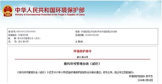 1月17日,環(huán)保部印發(fā)了《排污許可管理辦法(試行)》,標(biāo)志著我國(guó)排污許可制度的第一個(gè)部門規(guī)章正式出臺(tái)。