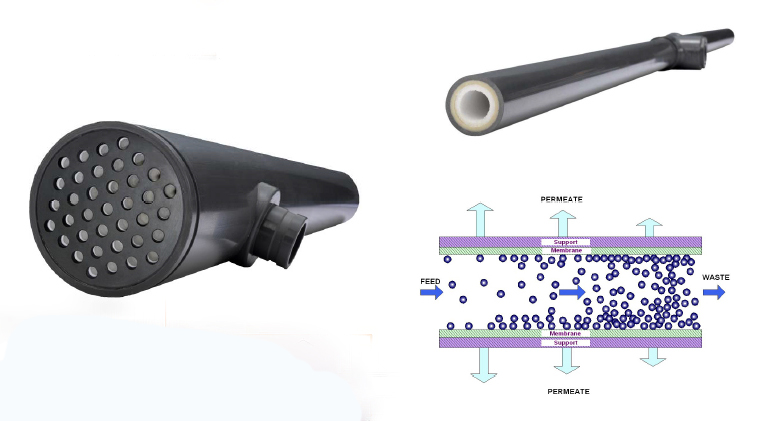 美國(guó)Duraflow公司的錯(cuò)流管式微濾膜(簡(jiǎn)稱DF膜)使用的是有耐強(qiáng)性和耐化學(xué)腐蝕性的PVDF材質(zhì)制作而成,由于其接近于超濾過(guò)濾孔徑,使用這種類型的微濾膜可以高效的去除廢水中的污染物,同時(shí)由于其獨(dú)特的構(gòu)造,可以使含有污泥顆粒的廢水進(jìn)入膜系統(tǒng)進(jìn)行直接的固液分離,因此應(yīng)用于目前常見(jiàn)的回用工藝流程里,可以省去沉淀池、多介質(zhì)過(guò)濾,砂濾、碳濾及超濾等環(huán)節(jié),在目前工業(yè)廢水處理的領(lǐng)域里被稱為“現(xiàn)時(shí)有效的技術(shù)”。更進(jìn)一步的來(lái)說(shuō),這項(xiàng)技術(shù)與現(xiàn)有的反滲透系統(tǒng)或EDR系統(tǒng)(頻繁倒極電滲析)等其他深度除鹽技術(shù)聯(lián)合運(yùn)用可以真正實(shí)現(xiàn)廢水回用的目的。在工業(yè)廢水處理的領(lǐng)域里,本產(chǎn)品能承受化工和機(jī)械不同的物化壓力來(lái)證明它的耐用性,已經(jīng)有許多這樣的膜系統(tǒng)運(yùn)用在粗劣的環(huán)境和條件下。