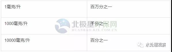 一般來(lái)說(shuō),廢水中的有機(jī)物質(zhì)和無(wú)機(jī)物質(zhì)的含量是很小很小的,如果用百分濃度或其他濃度來(lái)表示則太麻煩太不方便了,譬如一噸廢水中往往只有幾克、幾十克、幾百克甚至幾千克污染物質(zhì),其單位即為克/噸(g/T),如將噸換算成升即為毫克/升(mg/L)。計(jì)算時(shí)可參考下表?yè)Q算: