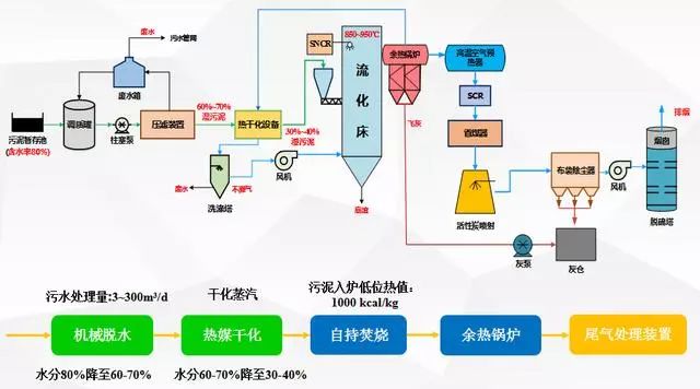 本方案直接燃用壓濾后熱值高于800kcal/kg市政污泥(含水率低于60%),無需任何輔助燃料伴燒可實現(xiàn)自持焚燒。