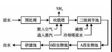 在堿性條件下,利用氨氮的氣相濃度和液相濃度之間的氣液平衡關系進行分離的一種方法。一般認為吹脫效率與溫度、pH、氣液比有關。