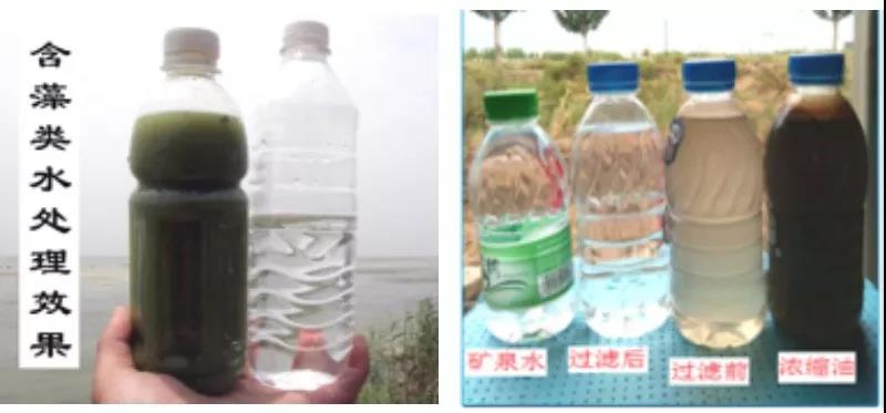 左圖是湖泊治理的過濾效果,右圖是含油污水的過濾效果